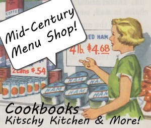 Since it’s Labor Day is coming up, it’s time to trot out the old BBQ standbys here on Mid-Century Menu: The loaf of grilled hot dogs, the potato salad with gelatin in it, the spiced lemonade and the chocolate cake made with tomato soup. These are all really good, I swear, and would make a fantastic cook-out meal! Ahh, Labor Day, where everything is last minute. Last minute back-to-school shopping. Last minute gardening. Last minute vacations. But your Labor Day cookout doesn’t need to be last minute. Here on Mid-Century...