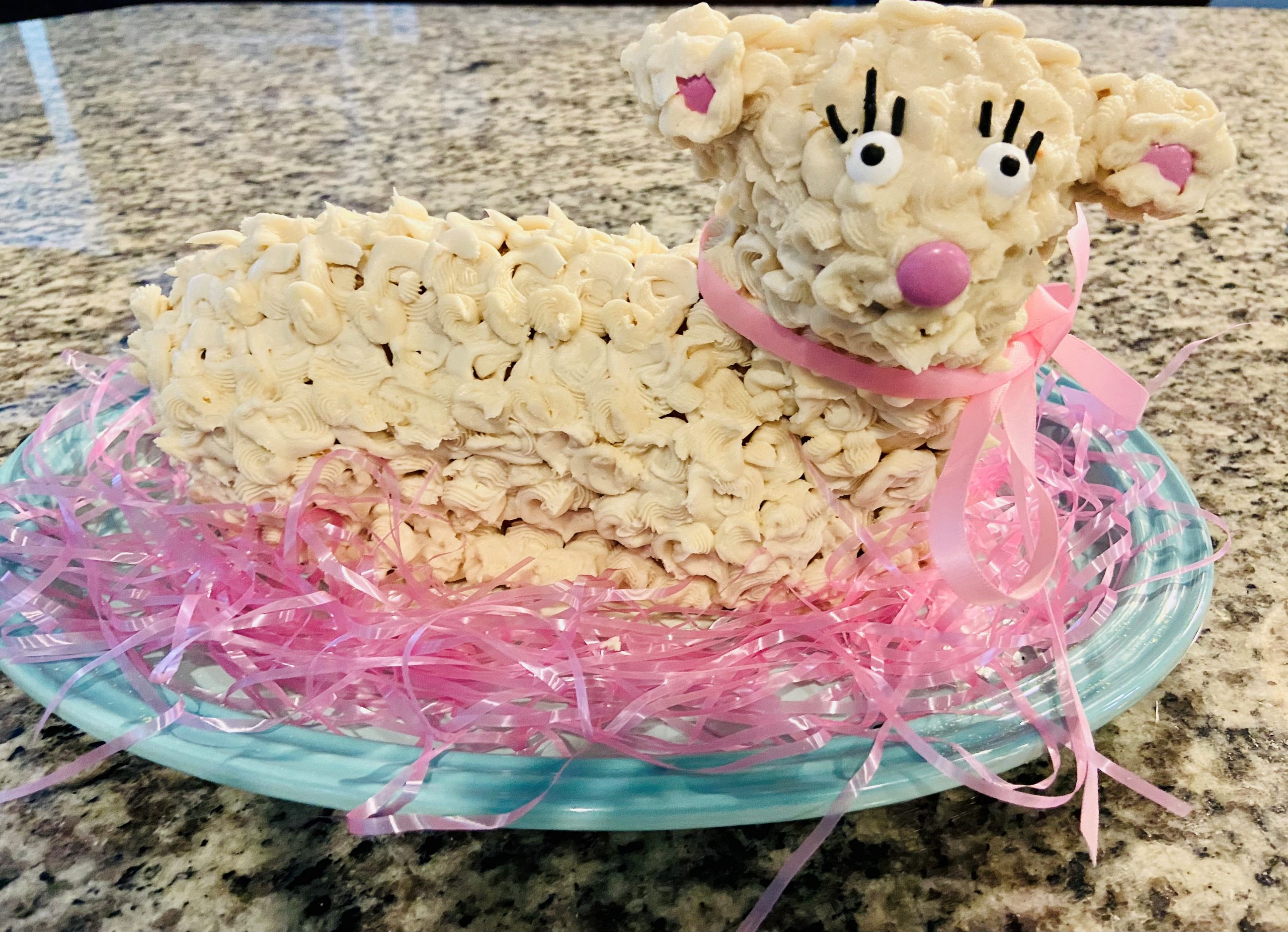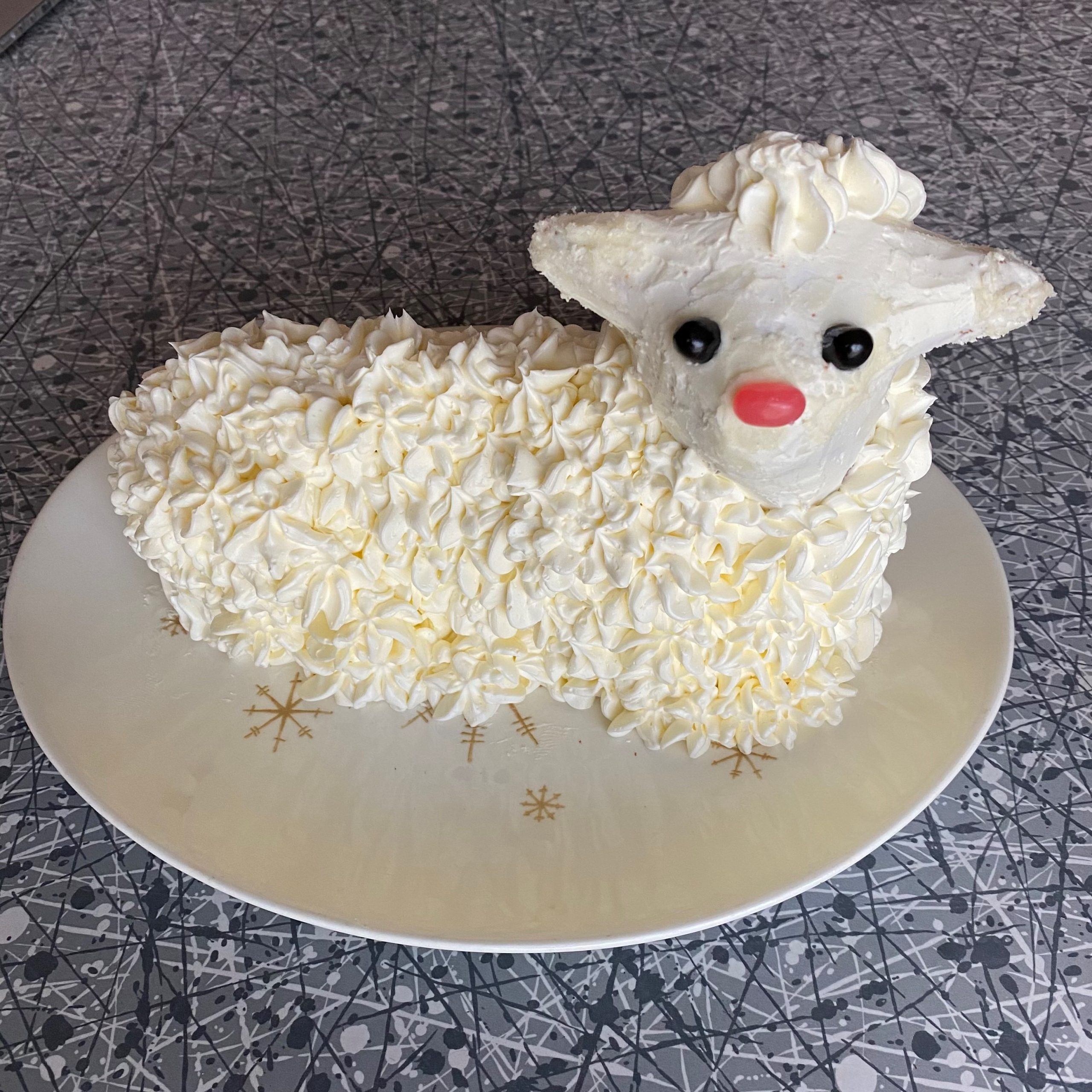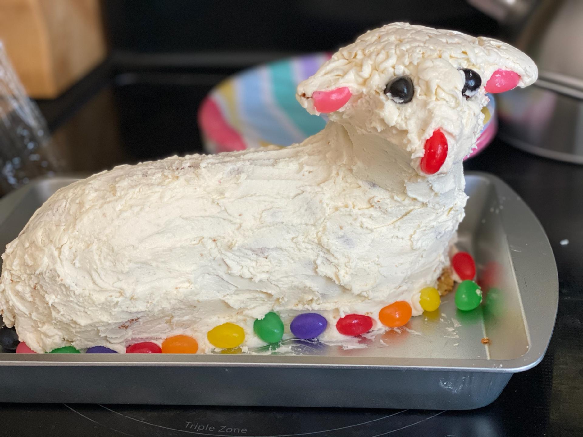 - Made by Tiara Berkel and Kim Birkett using the Renalde cake recipe and a cream cheese buttercream frosting. His name is Lemmy the Lamb, and he was delicious 😋