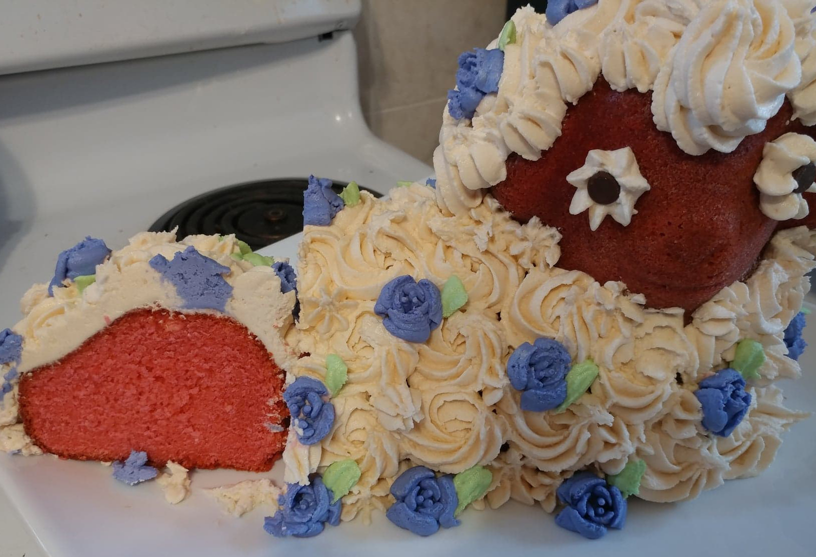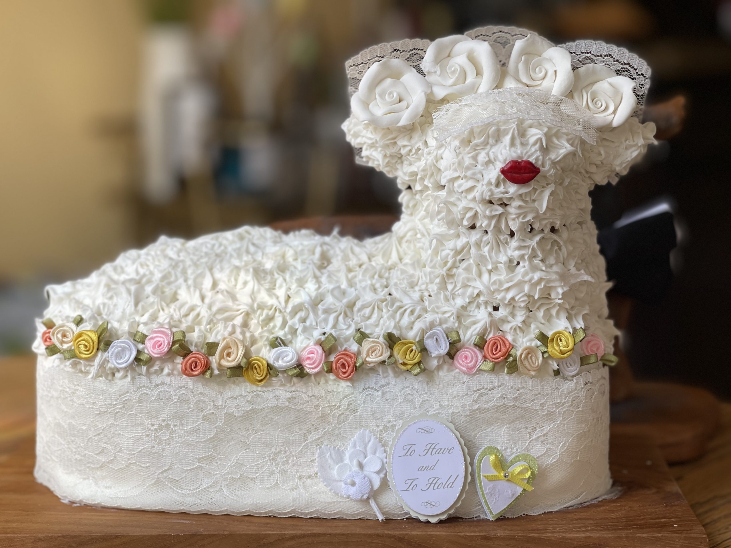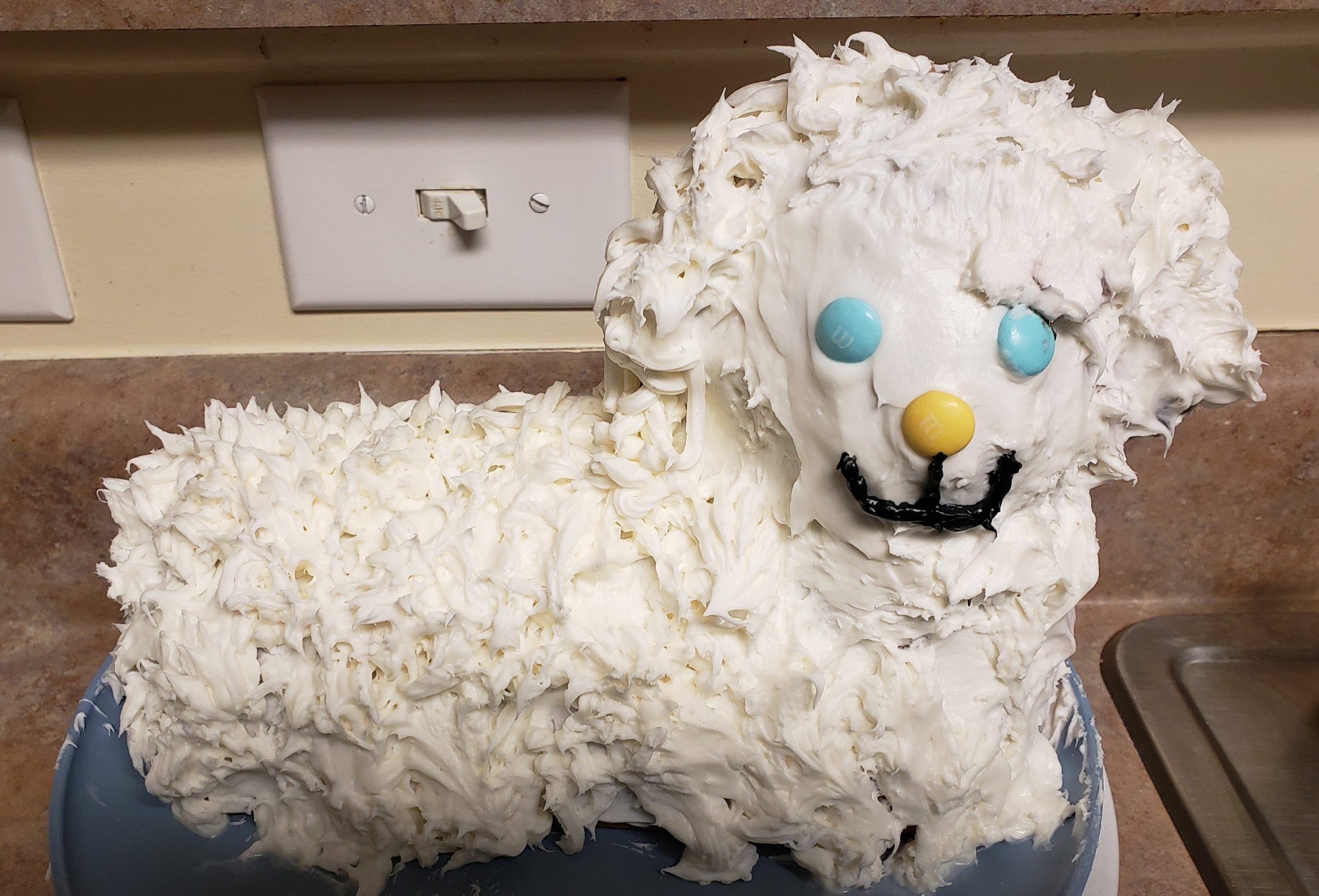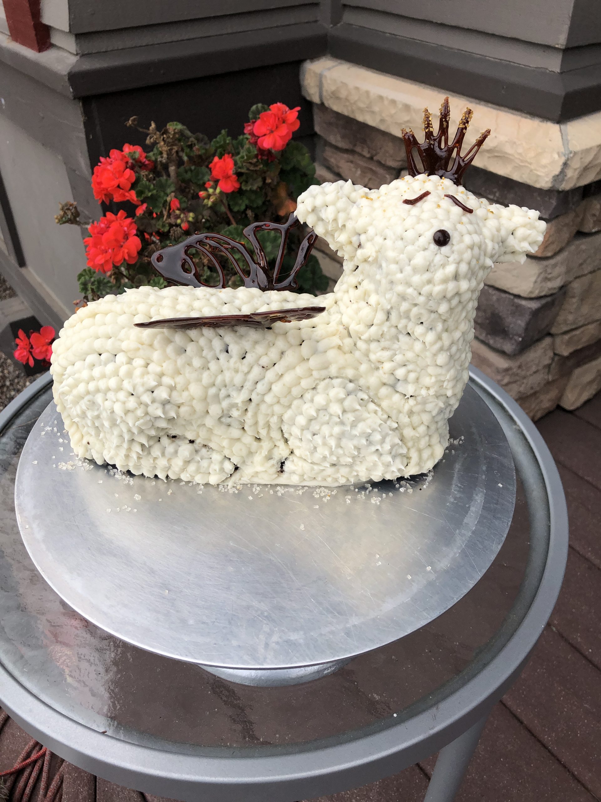 - Made by Tiara Berkel and Kim Birkett using the Renalde cake recipe and a cream cheese buttercream frosting. His name is Lemmy the Lamb, and he was delicious 😋