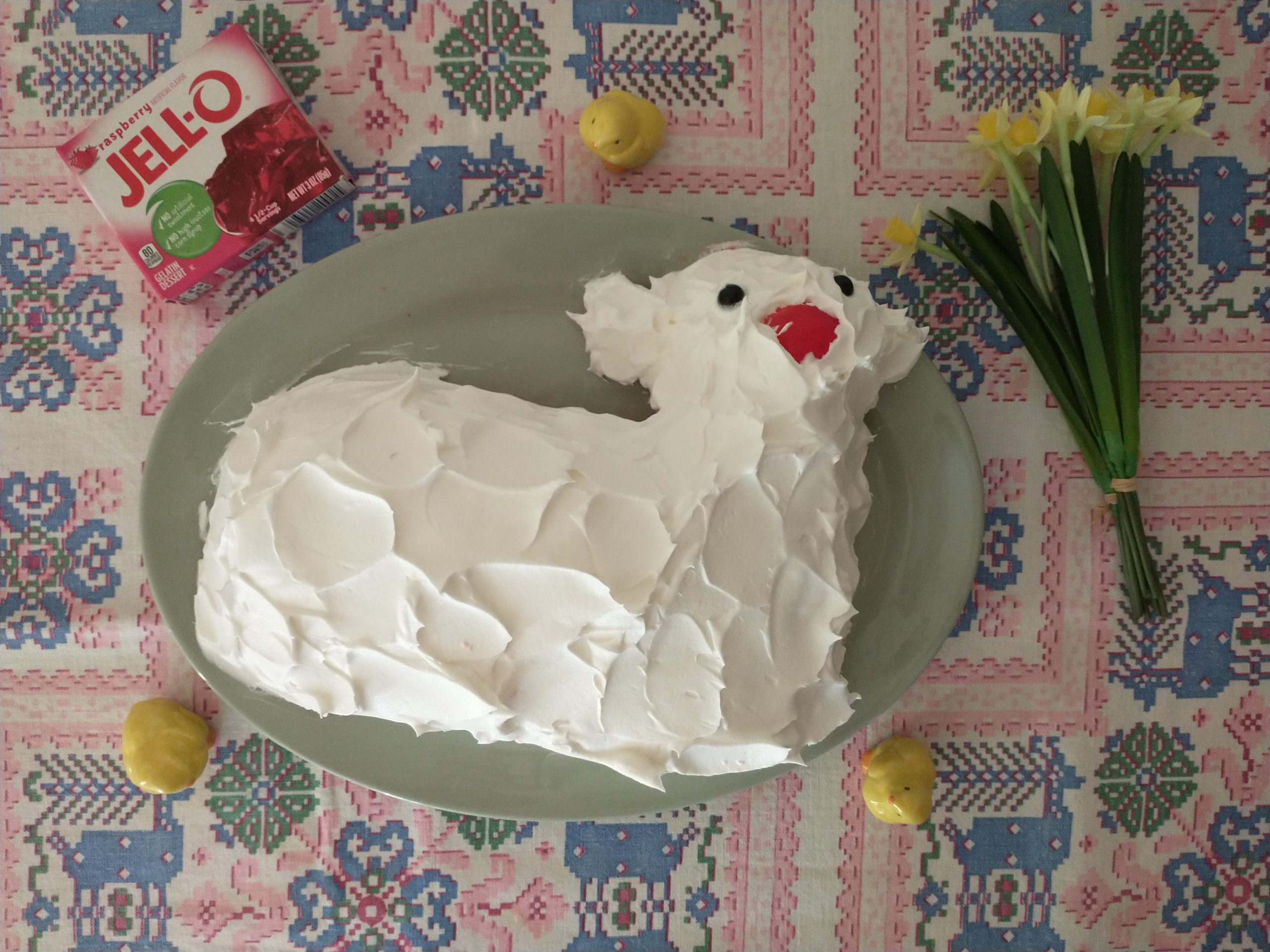 - Christin P Lamb Cake – Attached are my submissions for the lamb cake contest. While I have been a reader of your blog for many years, this is my first year entering, and my first year making a lamb cake! Thanks to your recipes and excellent tips, my first attempt was a success! I had to experiment a little with the pan after my Easter lamb cake, so I have three pictures for this year: Lamb Cake, Banana Bread Lamb, and Jell-O Lamb (covered in Cool-Whip, of course!)