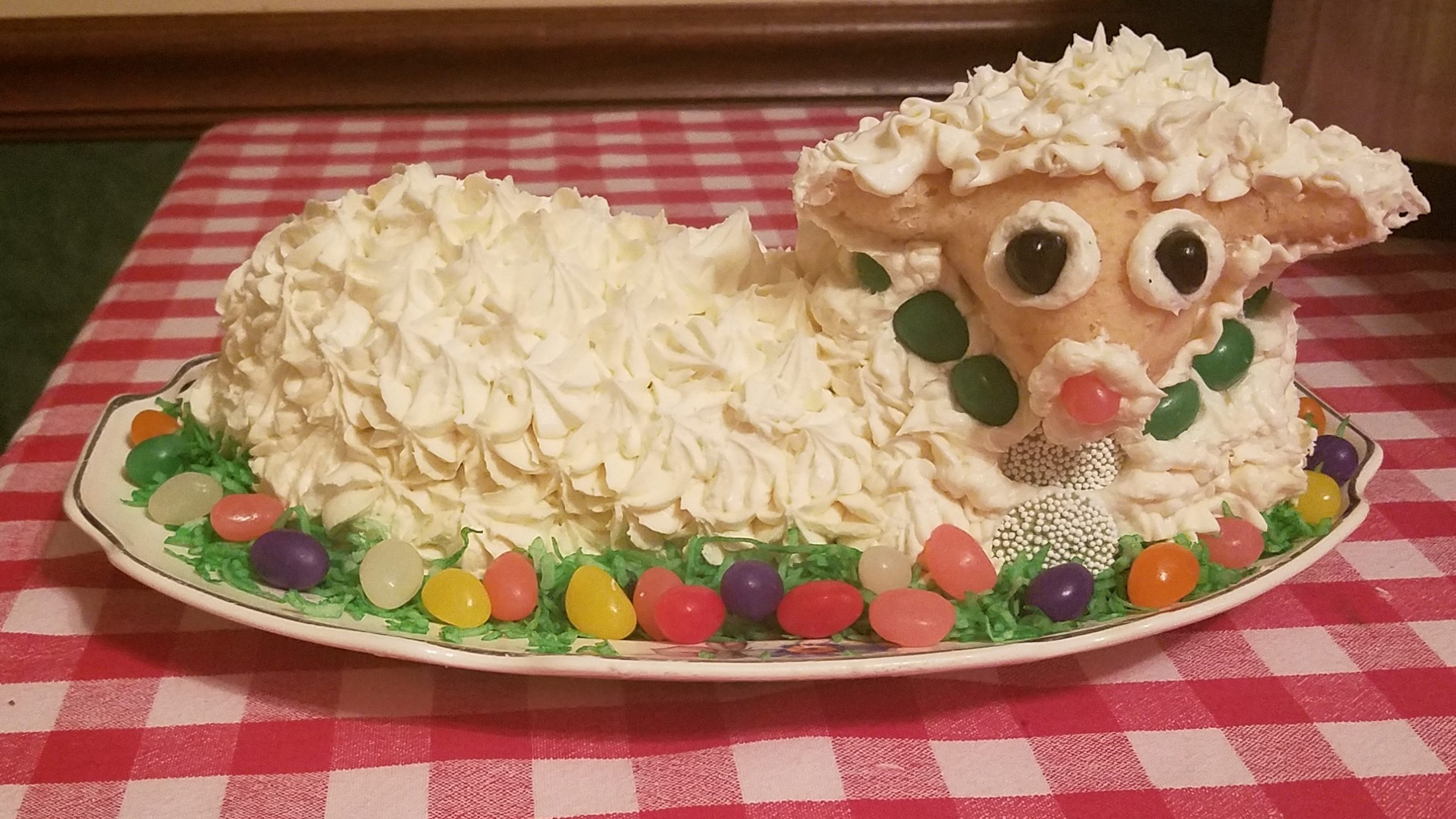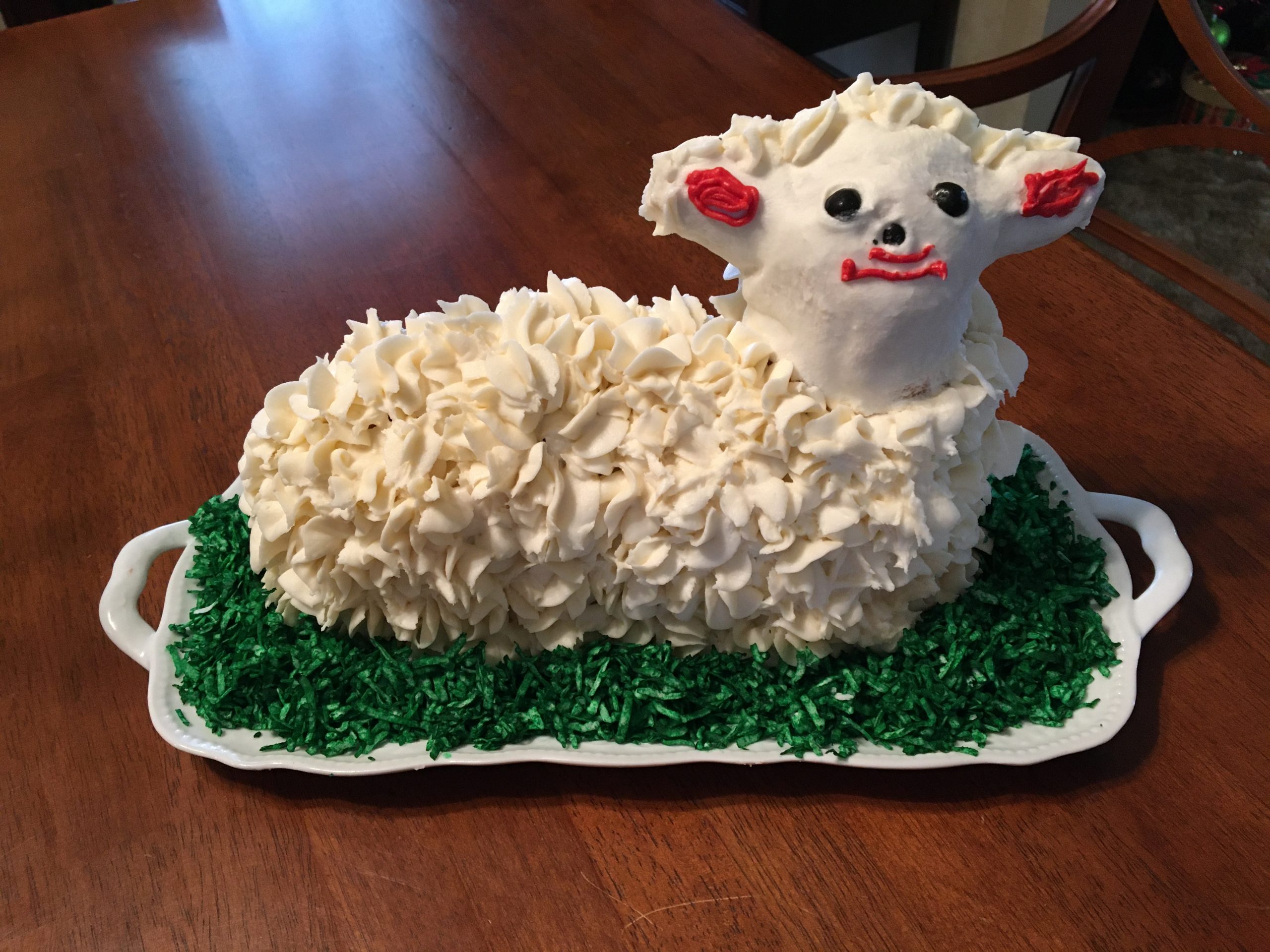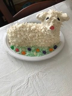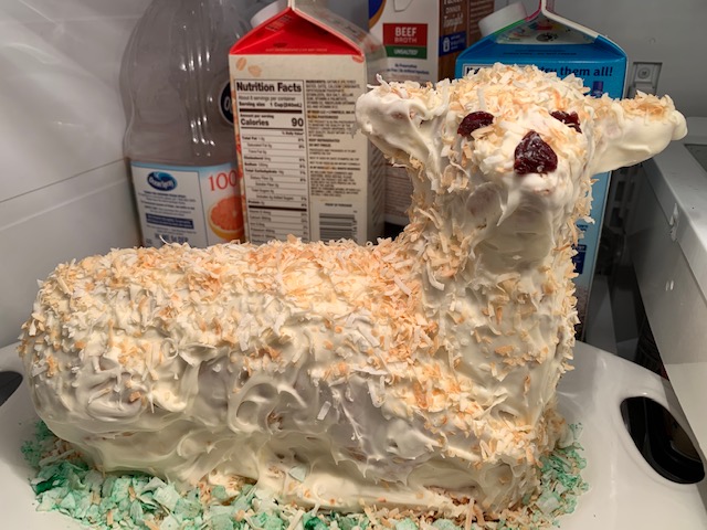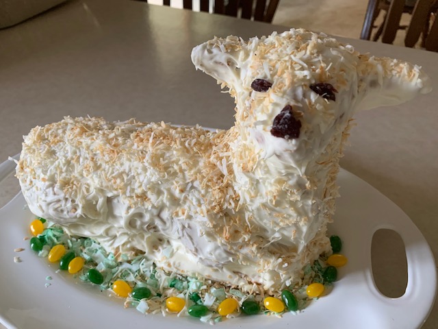 - Jena Hupman Lamb Cake – Coconut frosting over Renalde vanilla cake lamb – always delicious