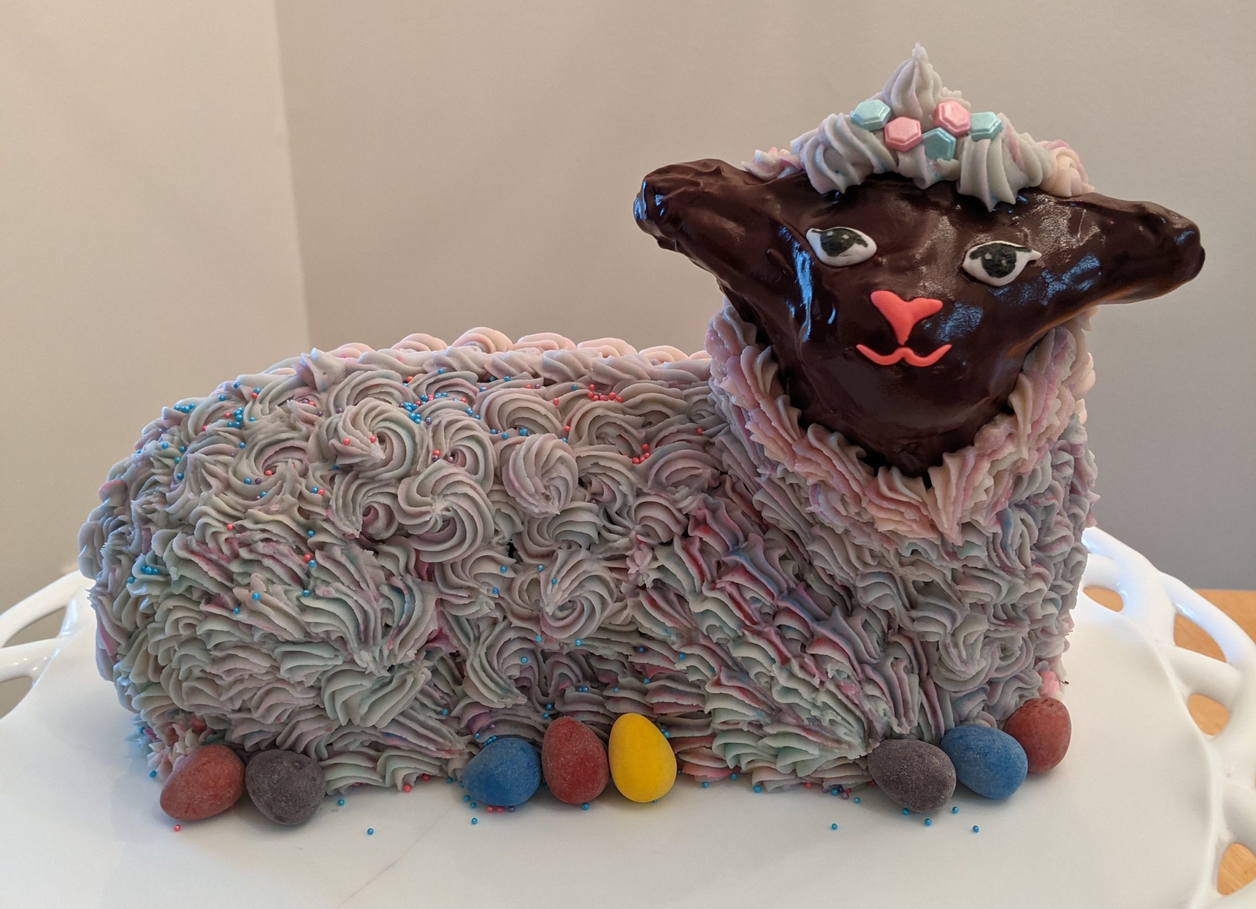 - Cathy Gault – Here is my submission for the 2021 lamb cake contest. I’m so excited that I finally managed to get it in in time! Yay!