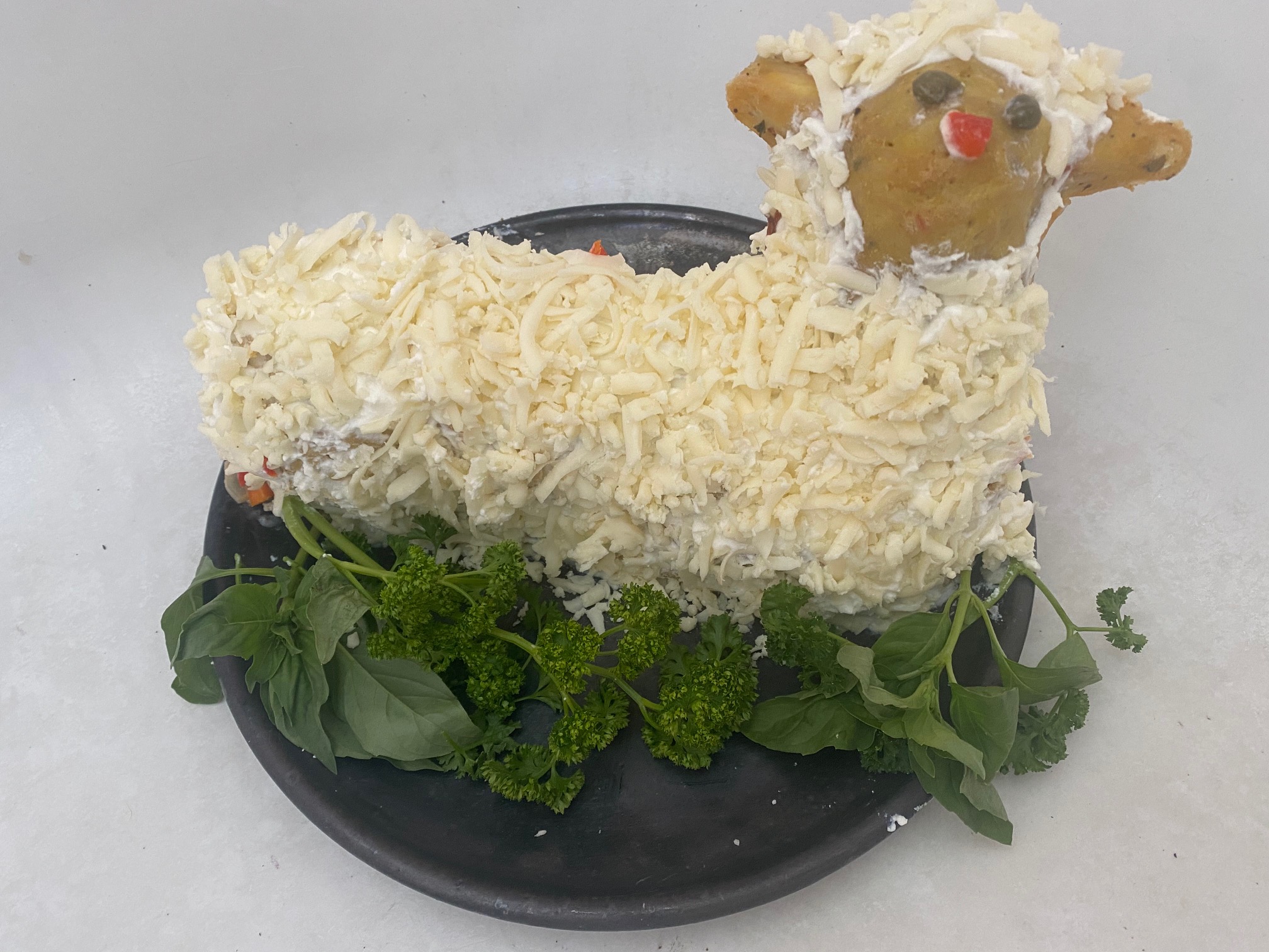 - Natalie Curtiss – He’s not cake, but this lamb has been lovingly crafted from herbed cream cheese dip.